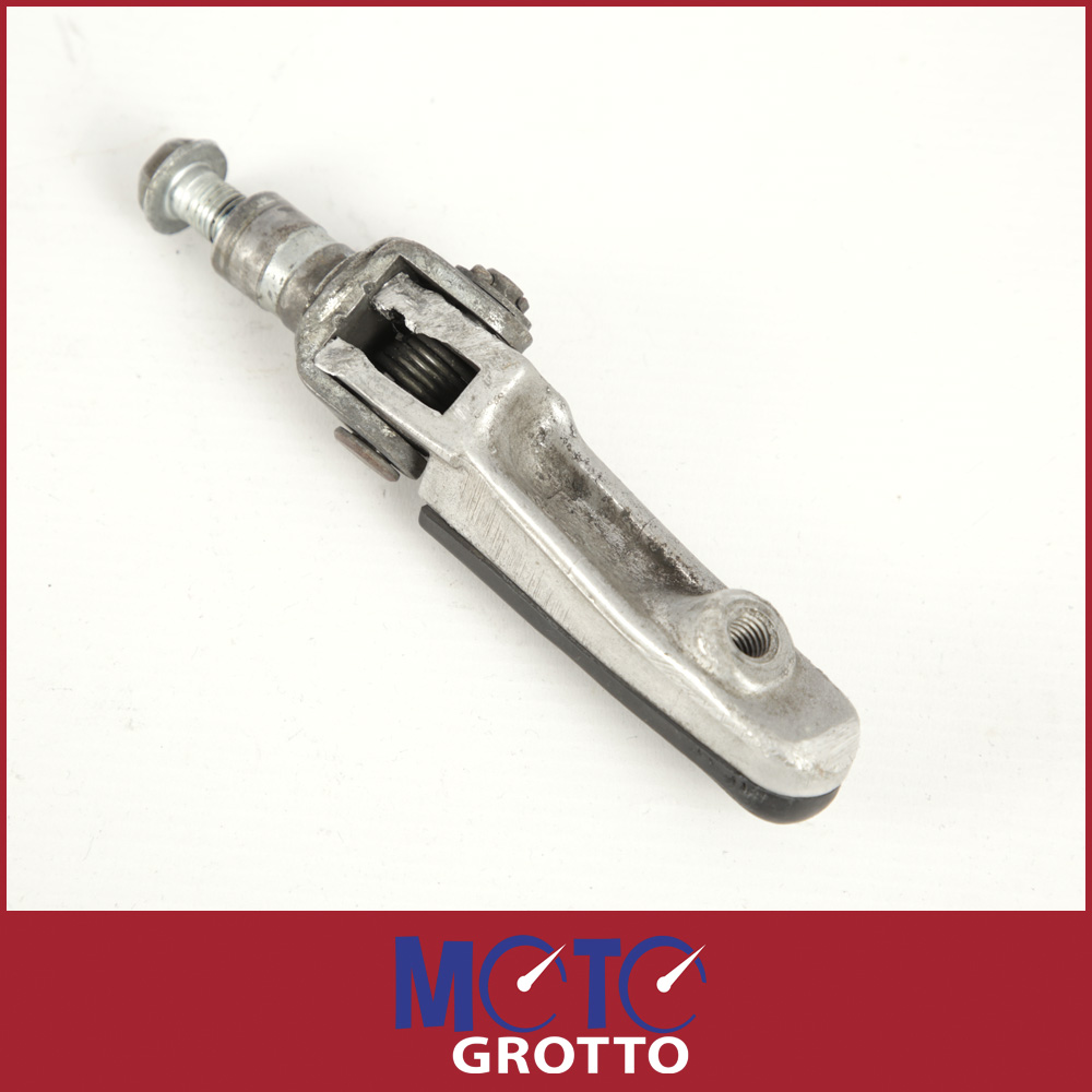 Honda VFR400R NC30 right rider foot rest in used condition with scuffing to the underside of the mount bracket end as shown.